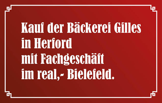 Kauf der Bäckerei Gilles in Herford mit Fachgeschäft im real,- Bielefeld.